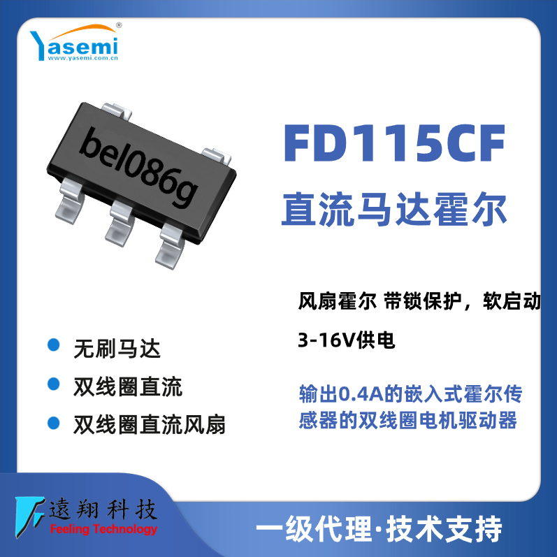 FD0255f 是一个带有嵌入式霍尔传感器的单线圈电机驱动器。它集成了电机驱动器和霍尔传感器,简化了PCB(印刷电路板)的设计,使小型电机的制造成为可能。锁定关闭和自动重启功能,防止电机过热,锁定后重新启动电机。